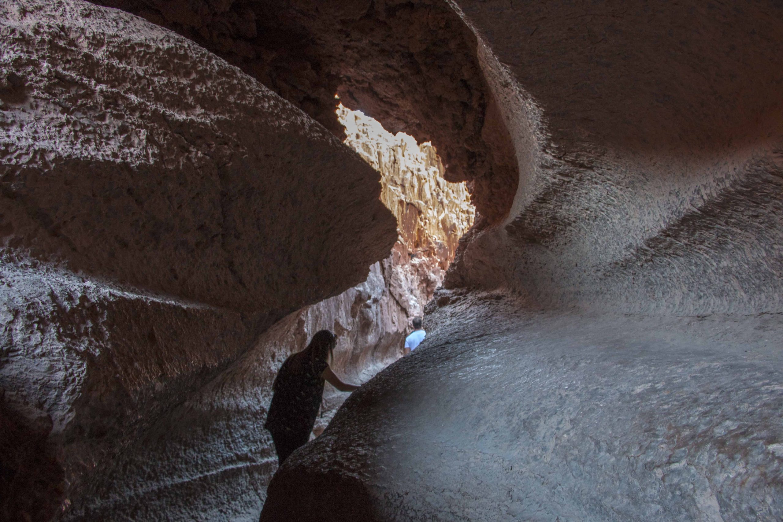 Você entra por um corredor bem estreito e vai caminhando rocha a dentro e o caminho vai ficando cada vez mais estreito. Em determinados momentos você terá que praticamente engatinhar para passar. As formações rochosas são bem curiosas, o que vale a visita. Um post legal sobre essa “caverna” é o post da Katarina, do Outro Blog.