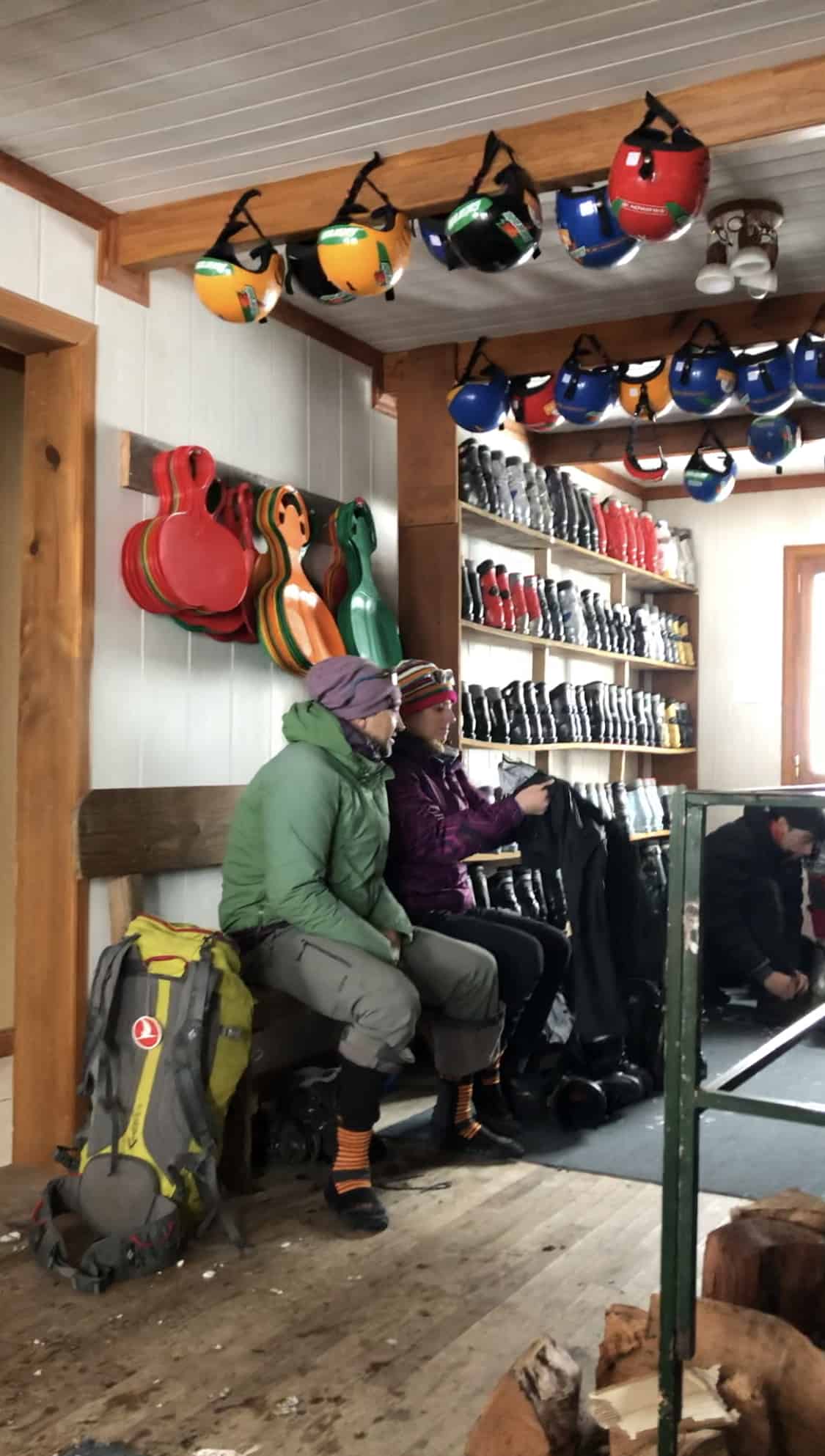 Gastamos $500 (equivalente a R$23) para alugar o equipamento de esqui para uma pessoa.