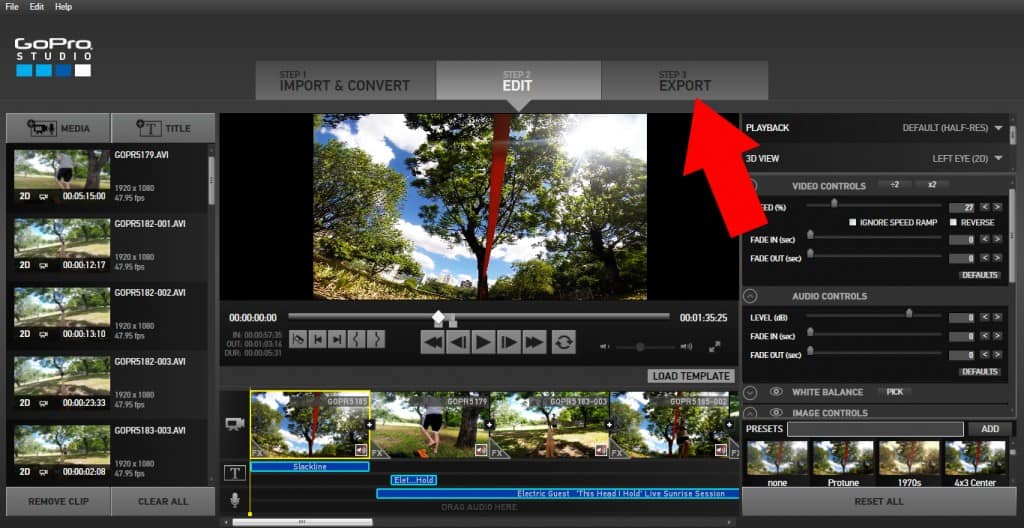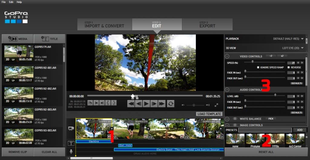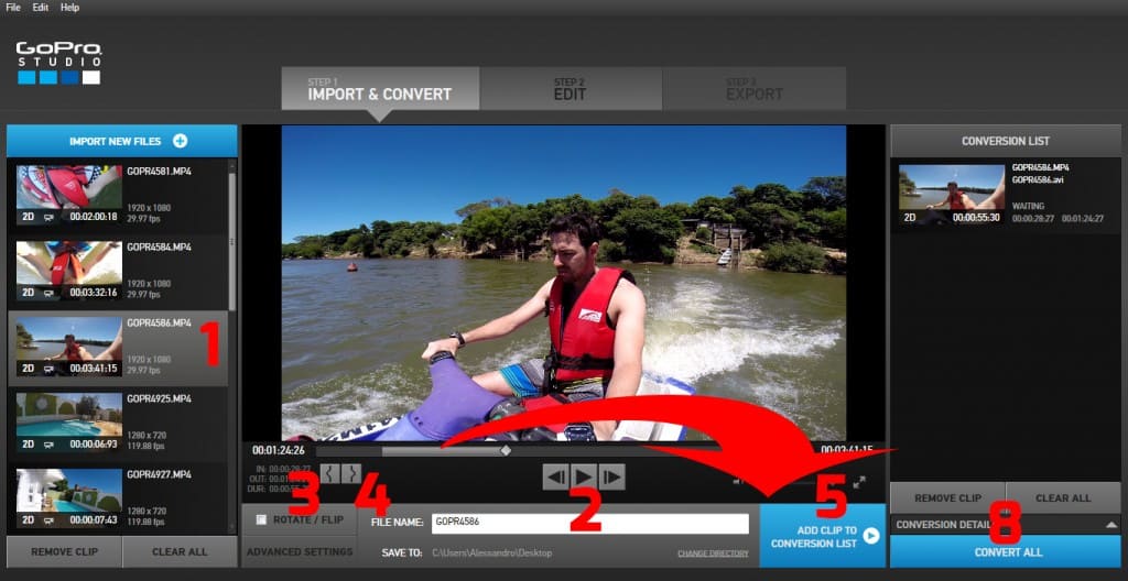 - Importo todos os vídeos selecionados para dentro do GoPro Studio;