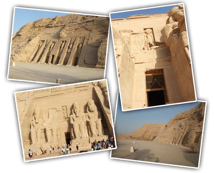 Vamos começar por Abu Simbel. Abu Simbel é um complexo arqueológico onde se encontram dois templos que foram escavados na rocha, por ordem do faraó Ramsés II, como homenagem à Nefertari, sua esposa preferida (dentre as centenas que ele possuía), e a si mesmo. O mais curioso é que o local onde os templos se encontram hoje não é o local original de construção. É que na década de 1960, em razão da construção de uma barragem na região, foi formado um lago de grandes proporções (Lago Nasser). O nível atingido pelo lago artificial deixaria todo o complexo submerso, razão pela qual ele foi cirurgicamente movido para uma outra área, mais alta, mantendo exatamente suas características. O templo de Ramsés (que também é uma homenagem aos deuses Rá, Ptah e Amun-Rá) é o maior dos dois templos, e um dos mais bonitos e bem preservados do país, e certamente vale a visita. Outro fato curioso é que o templo foi construído de modo que em dois específicos dias do ano o sol penetra no templo, iluminando as estátuas localizadas ao fundo, com exceção da estátua do deus Ptah, que possuía ligação com o underworld e que sempre permanecia no escuro . Esses dias são 22 de outubro e 22 de fevereiro e, apesar de não haver evidências claras que demonstrem tal fato, acredita-se que essas datas sejam respectivamente o nascimento e a coroação do faraó. Apesar de menor e mais simples, o templo de Nefertari (que também é uma homenagem à deusa Hathor) é majestoso e uma grande demonstração do que a civilização egípcia foi capaz.