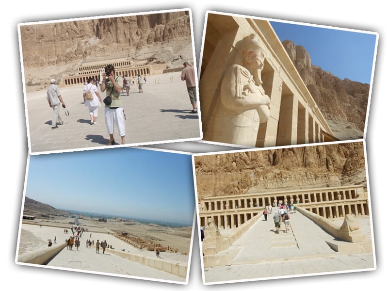 Sem desmerecer o Vale dos Reis, o templo de Hatshepshut é espetacular. Não só o templo possui uma arquitetura sensacional, mas a vista do topo é muito linda, voltada para o Nilo, de onde se pode observar o verde, que no Egito encontra-se basicamente nas margens do rio. Um fato histórico importante é que Hatshepshut era uma mulher, conhecida como a mais importante mulher a ter governado o Egito. Mais uma vez não vou me atrever aos detalhes históricos, mas recomendo a leitura deste site e deste também.