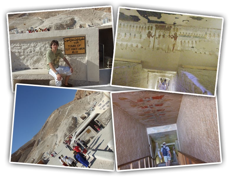 O Vale dos Reis é uma região onde os faraós e nobres do Novo Império Egípcio construíram suas tumbas (obviamente não foram eles que construíram, mas vocês entenderam). Para maiores informações históricas, recomendo esse texto aqui e também esse aqui. Me permitam não entrar nos detalhes históricos do Vale (que vocês podem ler nos sites que indiquei acima), mas colocar alguns fatos que tornam o local interessante. Primeiro, são quase 70 tumbas, que vão desde pequenos buracos a palácios subterrâneos. Até 1922 63 tumbas tinham sido descobertas, até que a famosa tumba de Tutankhamun foi descoberta. Um das razões da fama é que a tumba estava praticamente intacta, ao contrário das demais, que foram saqueadas de todas as maneiras possíveis ao longo dos anos. A tumba do jovem faraó (acredita-se que subiu ao trono aos 9 anos) pode ser visitada, mas fotos internas são proibidas (assim como nas demais que podem ser visitadas). O Vale das Rainhas é um pouco menos badalado, mas a visita é válida em razão da proximidade com o Vale dos Reis. No Vale das Rainhas encontra-se a tumba de Nefertari, esposa preferida de Ramsés II e que foi homenageada com o templo de Abu Simbel.