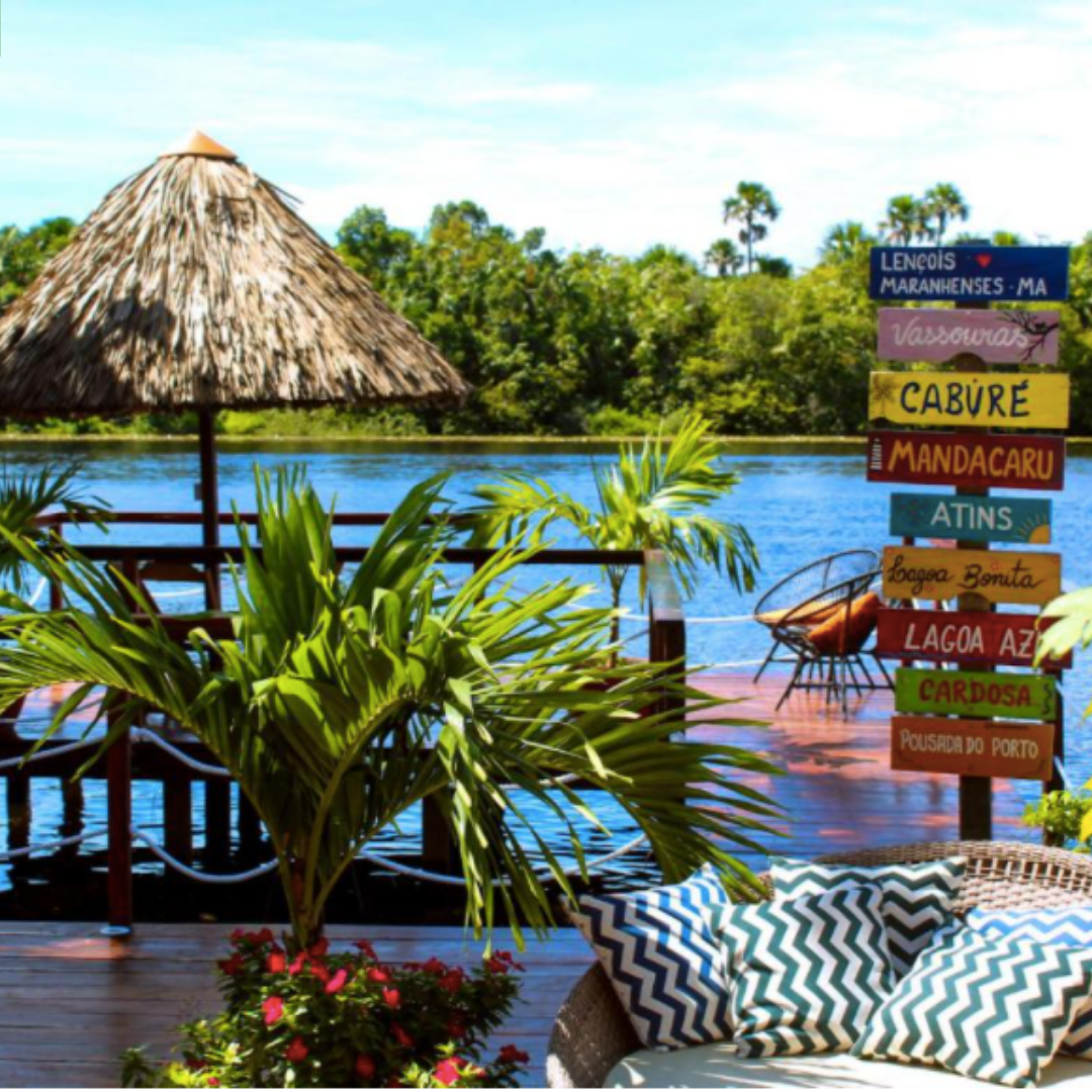 Para uma hospedagem mais luxuosa, com conforto e ótima infraestrutura. Os chalés são separados uns dos outros e o resort fica em frente ao Rio Preguiças. O Porto Preguiças Resort dispõe de 2 piscinas com bar e espreguiçadeiras, academia e quadra poliesportiva. Os quartos têm ar-condicionado, TV, frigobar e banheiro com secador de cabelo. O Resort está situado a 2 km do centro de Barreirinhas e possui estacionamento gratuito para os hospedes.