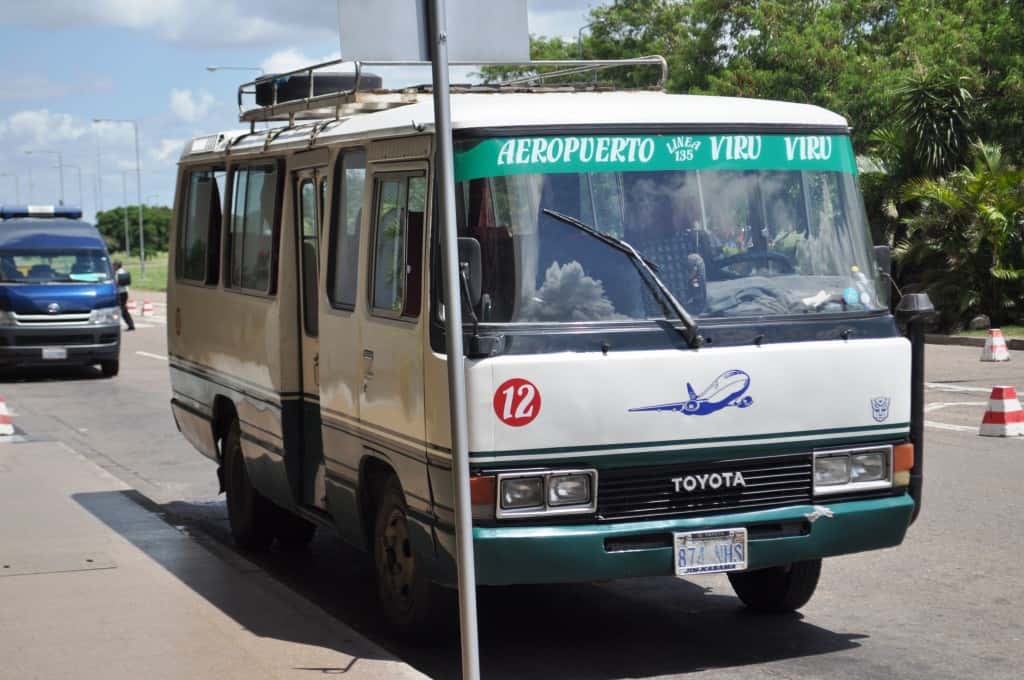 Pegue um ônibus exatamente na porta do aeroporto e informe ao motorista que você quer descer no centro da cidade. O ônibus custa 6Bs por pessoa e leva em torno de 40 minutos. O aeroporto possui um serviço de locker para guardar sua mala que custava, na época, 50Bs.