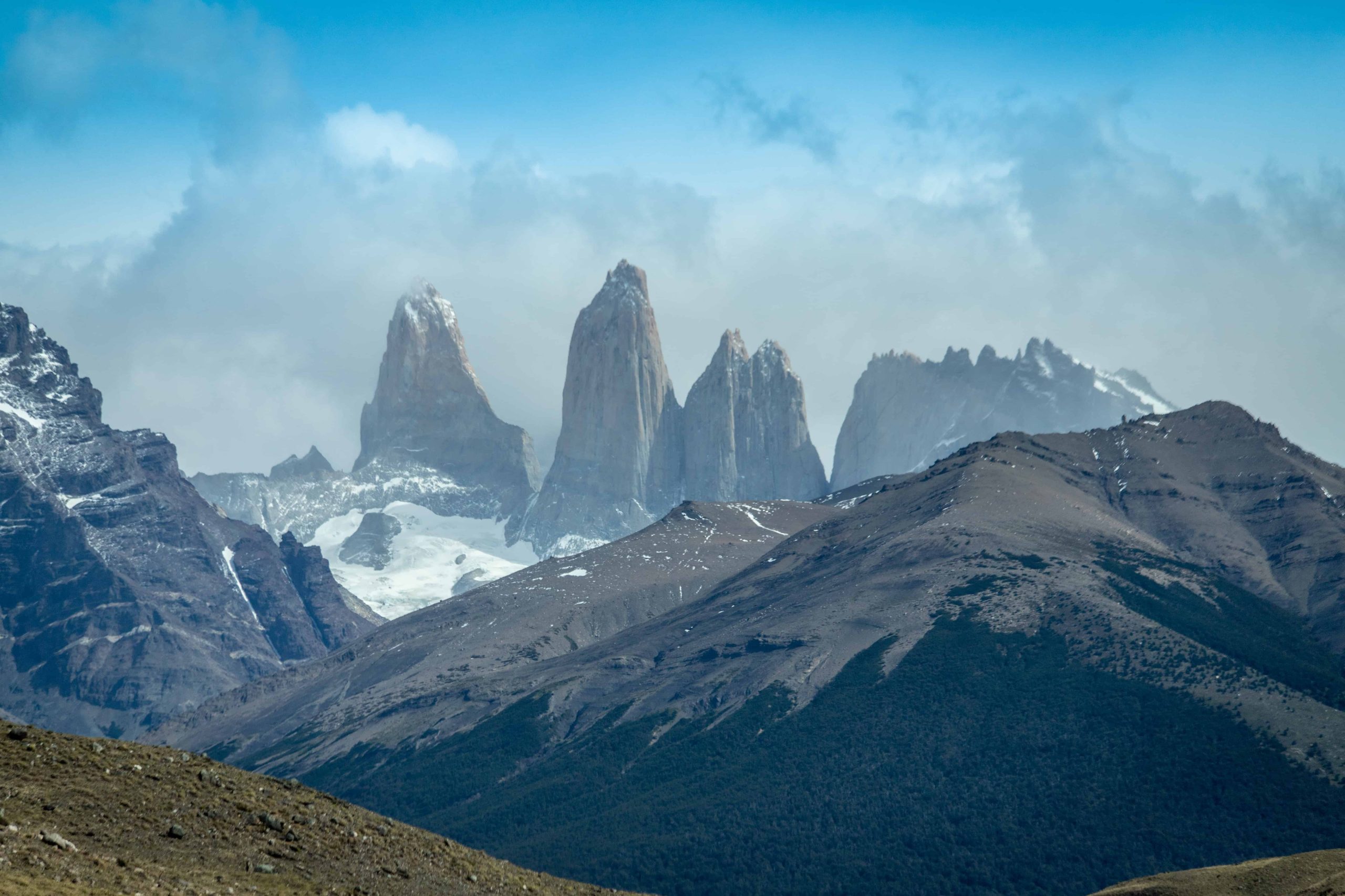 Infelizmente, nós não tivemos muita sorte. Apesar de o dia estar aberto em boa parte da trilha, quando chegamos na última parte nuvens densas estavam cobrindo as torres. Fazia bastante frio e nevava, mas ainda assim subimos com alguma esperança, mas não teve jeito. Não conseguimos enxergar as torres.