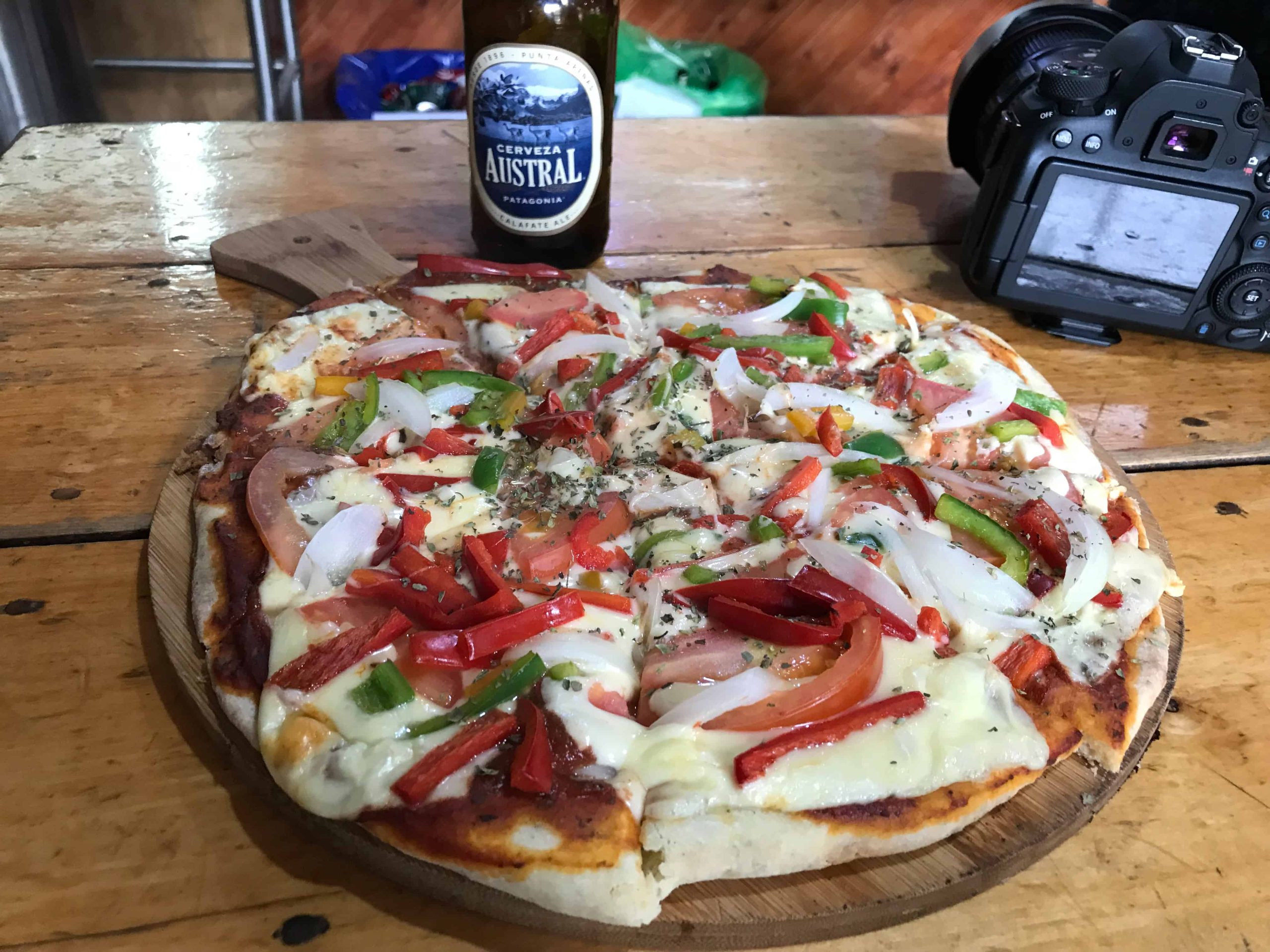 Entre o ponto de onde saímos (Refugio Torre Central) e o Mirador Base Las Torres ainda existem dois pontos onde você pode dormir: O Refúgio e Camping Chilenos, que tem uma estrutura bem legal, e o camping Torres, que fica bem na base do ponto que você começa a subida final ao Mirador. Este último é apenas camping, sem muita estrutura. Abaixo algumas fotos do Chilenos e da pizza que comemos por lá na nossa descida das Torres.
