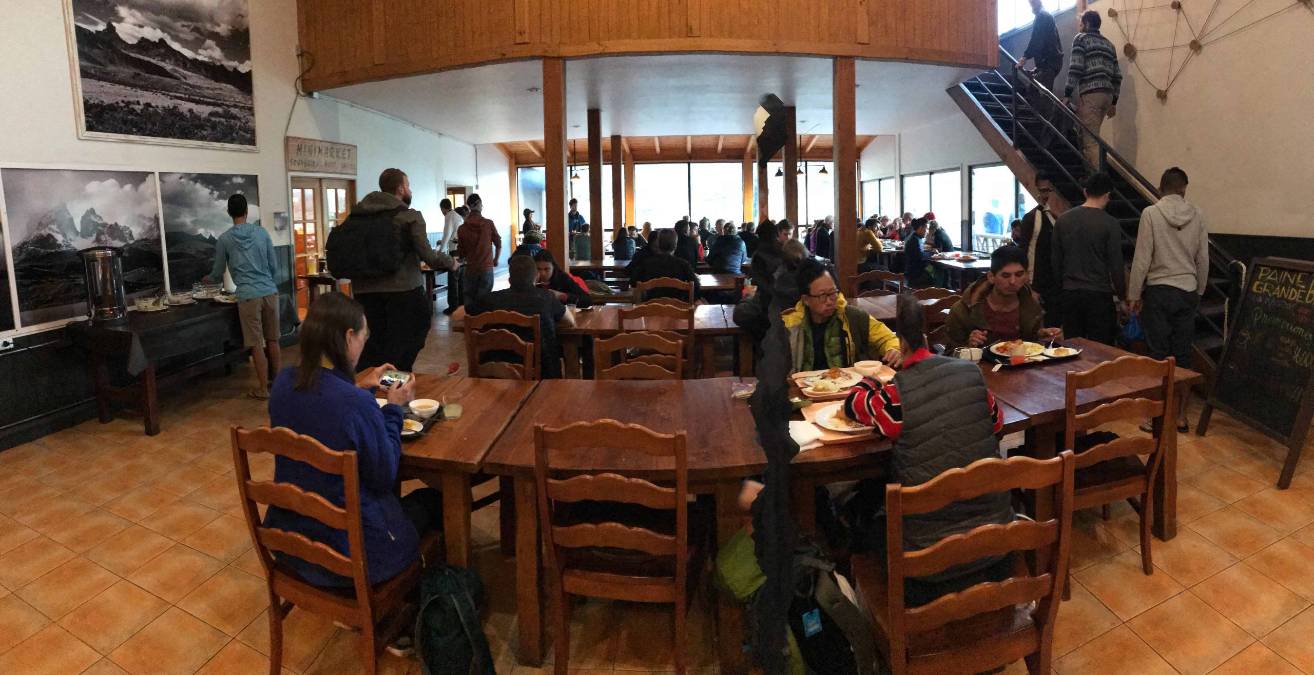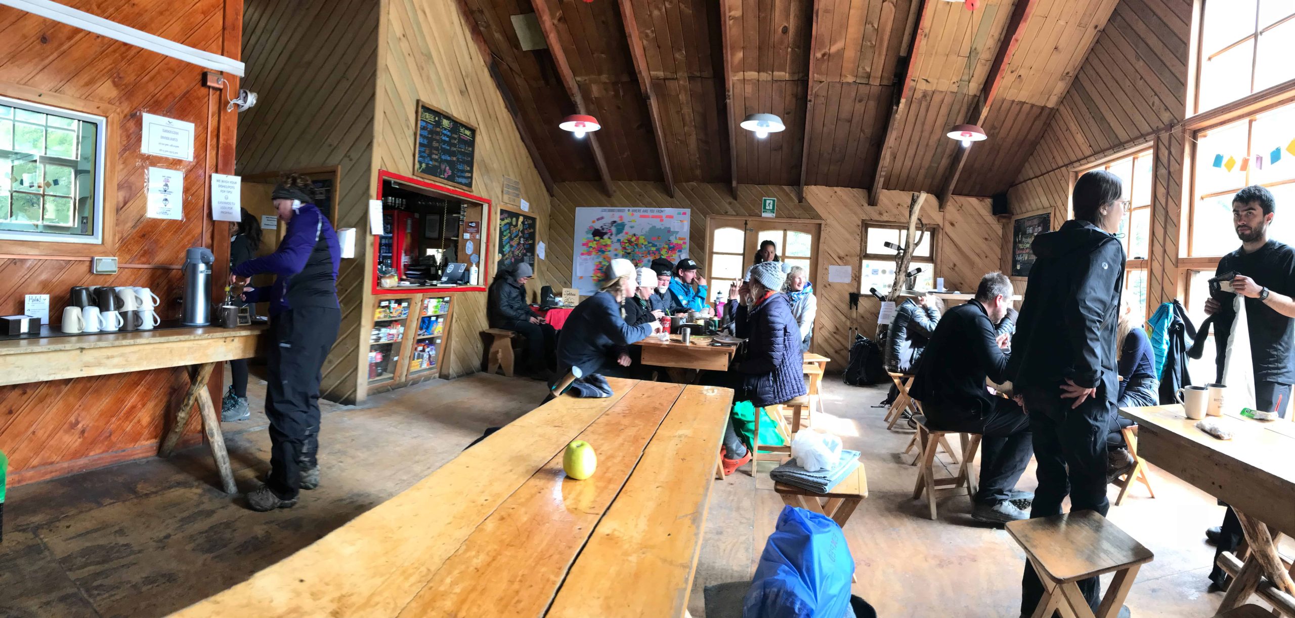Como falei, nós fizemos ida e volta no mesmo dia e passamos a noite em uma barraca do Camping do Refúgio Paine Grande. Aqui nós também aproveitamos e jantamos no restaurante do próprio Refúgio, mas muita gente do camping se reunia no refeitório do camping para preparar sua comida. Aqui também você encontra banheiros ótimos pra banho.