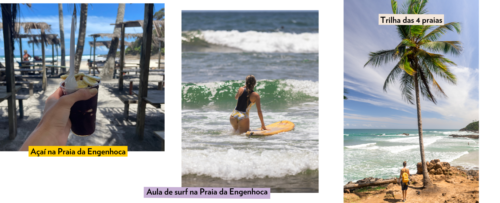 - Fazer uma aula de surf na Praia da Engenhoca e de lá seguir pela trilha das 4 praias para conhecer: