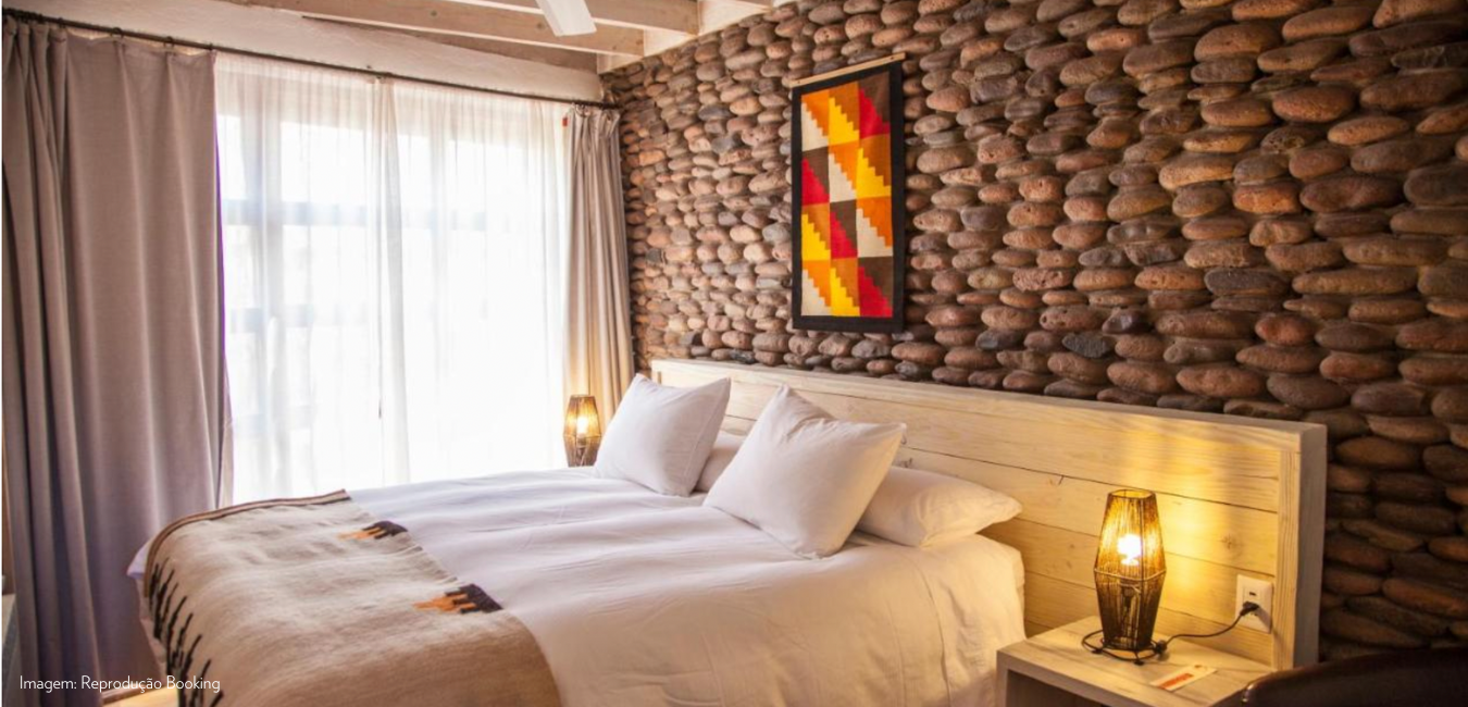 Localizado a 800m da Caracoles, o Altiplanico Atacama possui acomodações pensadas nos detalhes, com uma decoração bem bonita.